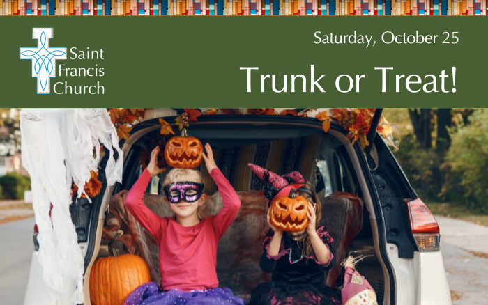 At 8:00 PM, the fun moves outside to the lower parking lot for a Trunk-or-Treat! This is where we need your help – parents and parishioners, we’re asking for volunteers to decorate your trunks and hand out candy. It’s a great way to get creative, meet other families, and make the night extra memorable for our kids.