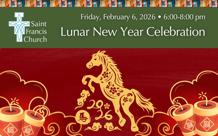 Join us for one of St. Francis’ most joyful and beloved traditions! St. Teresa’s Guild invites the whole parish and community to our Annual Lunar New Year Event on Friday, February 6, from 6:00–8:00 pm in the St. Francis Parish Hall.