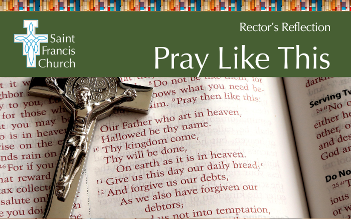 Jesus said to his disciples, “Pray like this: Our Father in heaven, hallowed be your name. Your kingdom come. Your will be done, on earth as it is in heaven. Give us this day our daily bread. And forgive us our debts, as we also have forgiven our debtors. And do not bring us to the time of trial, but rescue us from the evil one,” (Matthew 6:9-13, NIV).