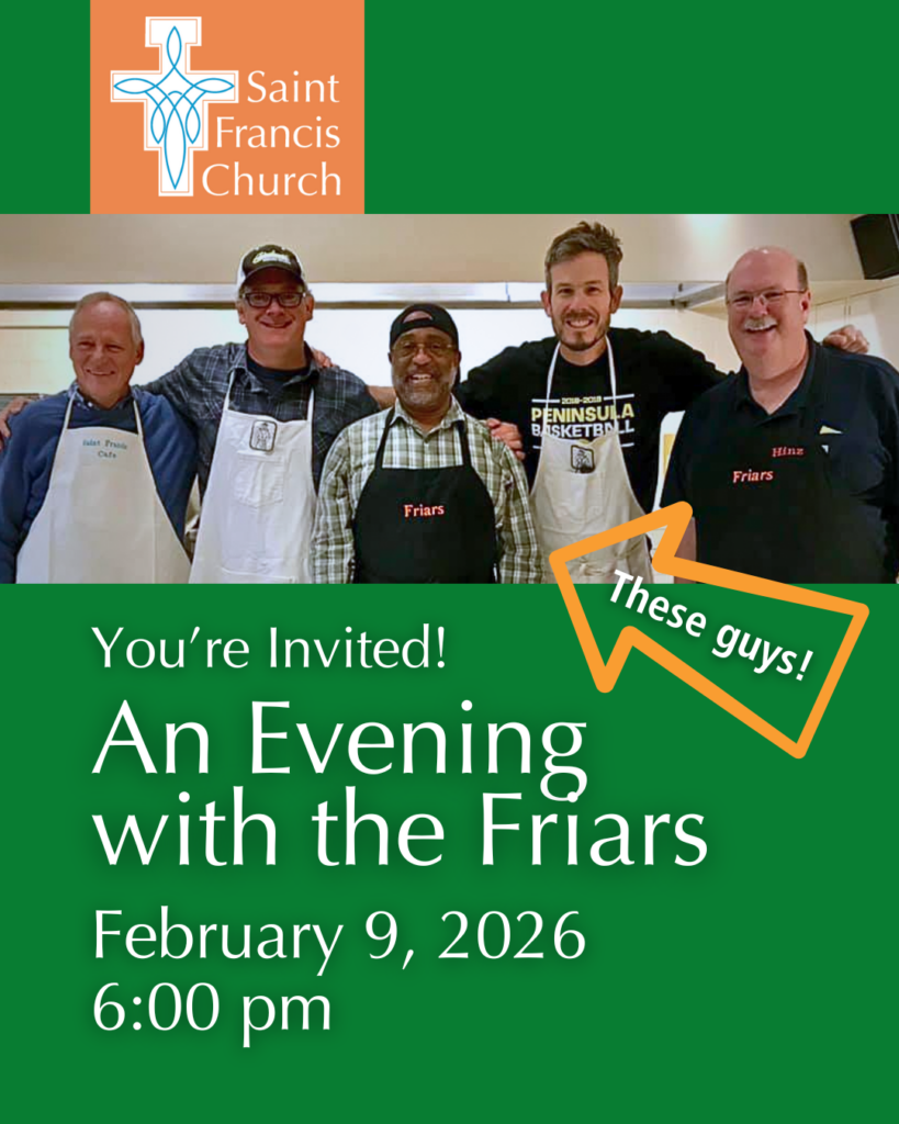 On Monday, February 9, we’re gathering in the Parish Hall at 6:00 pm for a special recognition dinner celebrating the Friars and all they do to keep hospitality alive and well at St. Francis. From welcoming smiles to helping hands, this ministry quietly makes a big difference — and this night is all about saying thank you.